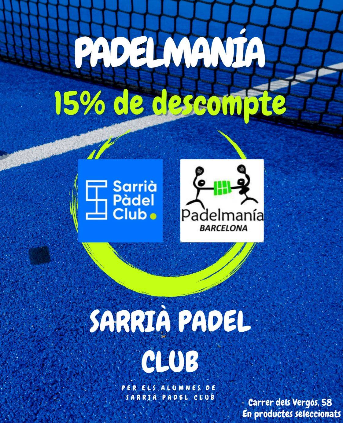 Sarrià padel club s'uneix a padelmanía, una tenda de material de padel situada a plaça artós.